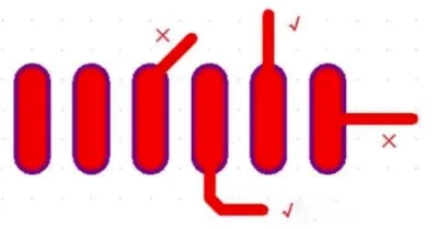 基础法则:杜绝直角走线,优先采用45°角或弧线;走线从焊盘中心引出,宽度不大于焊盘宽度;敏感线(时钟、模拟音频)与强干扰源(大电流、高速线)充分隔离。